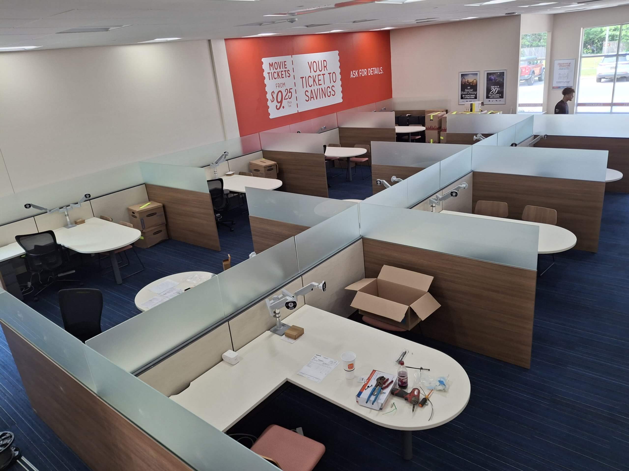 • Device Installation – Installed receptacles, GFI outlets, USB charging stations, and switches to meet the needs of a modern workspace.